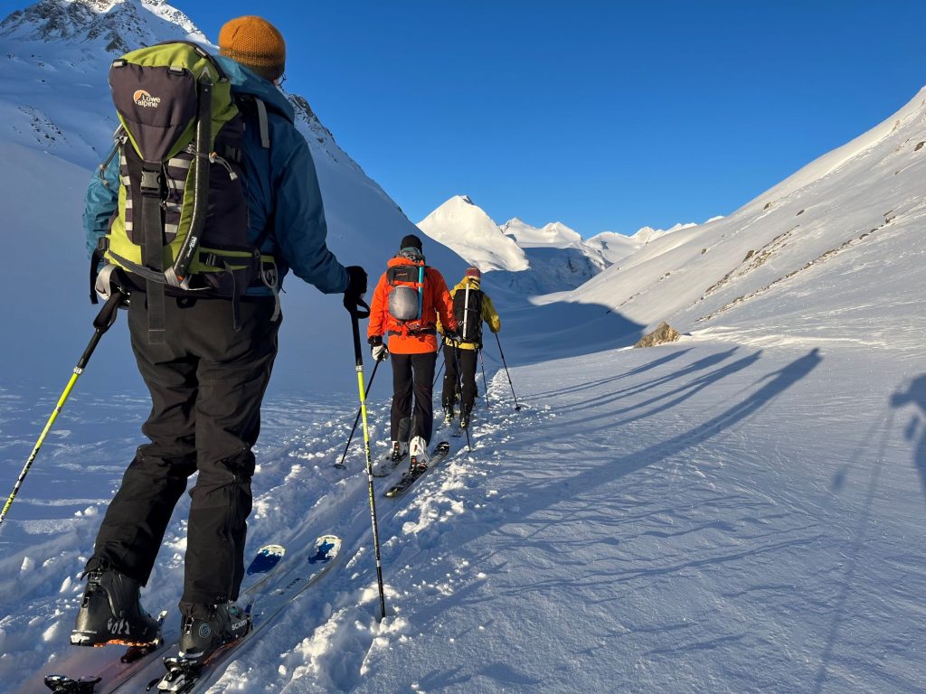 On remonte tranquillement sur le glacier, puis la crête finale du Wildhorn s’offre sans esbroufe : panorama XXL sur Oberland & Valais. La descente côté Iffig déroule en grandes courbes « moquette ». La Wildhornhütte accueille les cuisses qui tirent avec un sourire et une soupe bien salée.