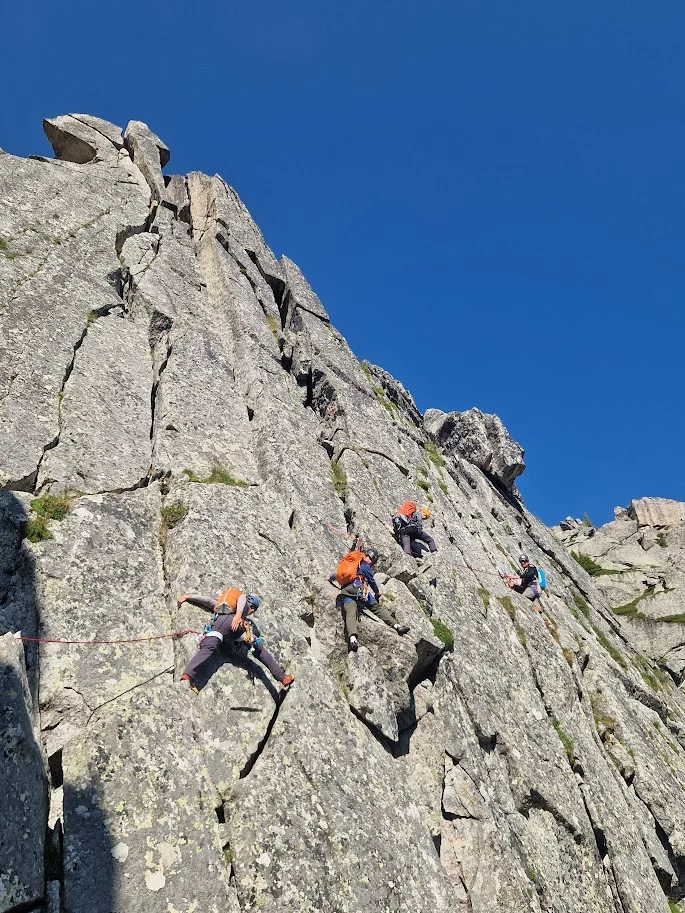Très jolie course d’arête avec le Mont-Blanc en toile de fond. Une course alpine à la journée. Un très beau gneis à grimper, un accès par un couloir de neige, quelques rappels… la course idéale pour se remettre dans le bain. (2 pers./guide)